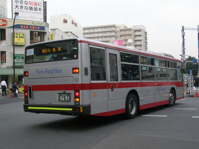 東急バスで初めて導入されたノンステップバスで、21台が目黒営業所に導入され碑文谷線や清水線を中心に運用されました。一時期バスナビラッピングでした。
