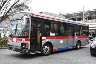 | コメント | 2014年2月に340号車の代替で導入されたレインボーⅡです。 上期に導入された車両と同じく標準仕様ノンステップバスのステッカーが貼られていない状態になっています。 コーチ自由が丘線・美術館線(玉31・玉32)・雪が谷線などで活躍しています。 |