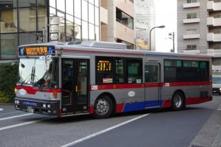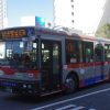 [S871]品川200 か 19-08(転属)2021/01/172008年導入-三菱ふそう,800番台(2008年導入),下馬営業所(SI),下馬営業所-過去に在籍の車両2014年度の動き,PKG-AA,三菱ふそう・西日本車体工業 車両データ メーカー 三菱ふそう 型式 PKG-AA274KAN 年式 2008年式 転属 淡島→[下馬]→瀬田 特記 コメント 2014年2月に恵比寿線の増発で淡島より転入してきました。 下馬では3台目のエアロスターSでおもに恵比寿線で活躍しています。 車両画像 下に行くほど古い画像です。 コメント 2014年1月よりAmazonのラッピングが施工されています。用賀駅にて コメント ハーフ再生が施工されました。用賀駅にて コメント 転属直後の画像。用賀駅にて